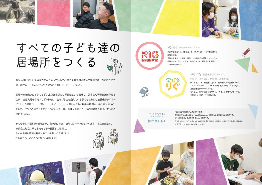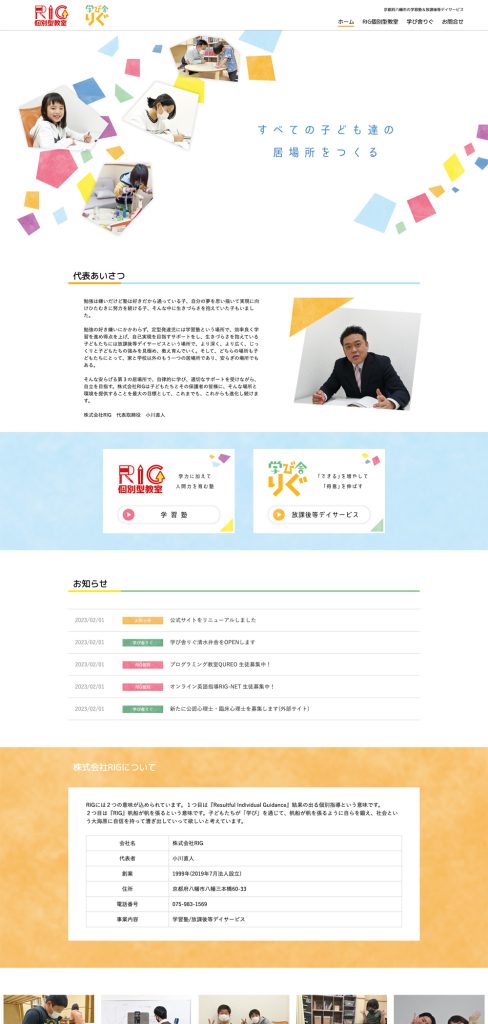 京都府八幡市で学習塾と放課後等デイサービスを運営されている株式会社RIG様のホームページとパンフレットを制作させていただきました。